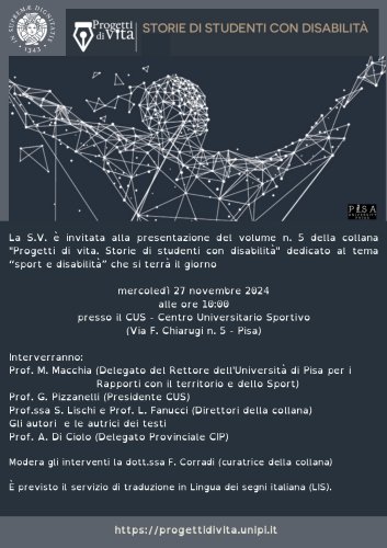 Mercoledì 27 novembre, alle 10, presentazione del volume n. 5 della collana "Progetti di vita. Storie di studenti con disabilità"" dedicato al tema “sport e disabilità”