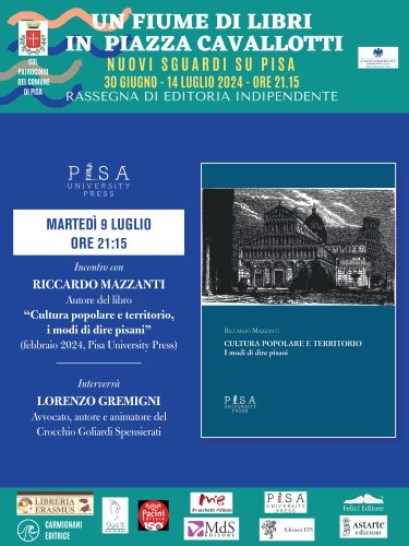 "Cultura popolare e territorio. I modi di dire pisani" del professor Riccardo Mazzanti sarà presentato martedì 9 luglio nell'ambito della rassegna "Un fiume di libri in piazza Cavallotti"