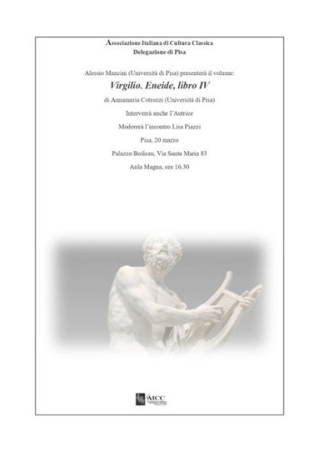 Mercoledì 20 marzo nell’Aula Magna di Palazzo Boilleau, si terrà la presentazione del volume di Annamaria Cotrozzi "Virgilio. Eneide libro IV", edito da Pisa University Press.