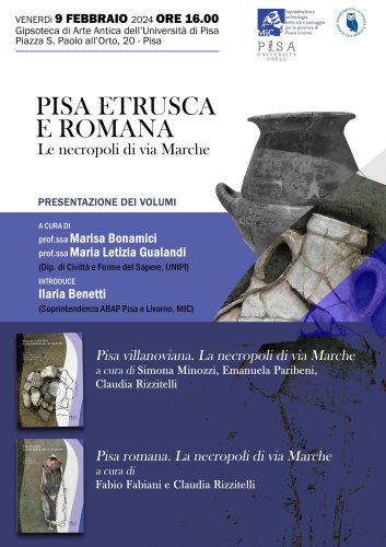 Alla Gipsoteca di Arte Antica dell'Università di Pisa presentazione dei volumi "Pisa villanoviana. La necropoli di via Marche" e "Pisa romana. La necropoli di via Marche", editi da Pisa University Press
