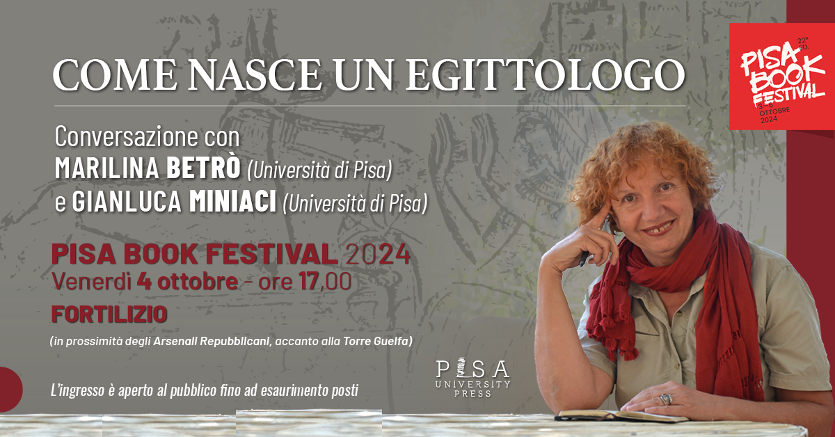 Nell'ambito del Pisa Boo festival, venerdì 4 ottobre, al Fortilizio della Torre Guelfa, alle ore 17, "Come nasce un egittologo", conversazione con Marilina Betrò e Gianluca Miniaci.